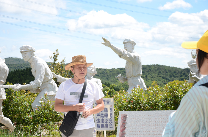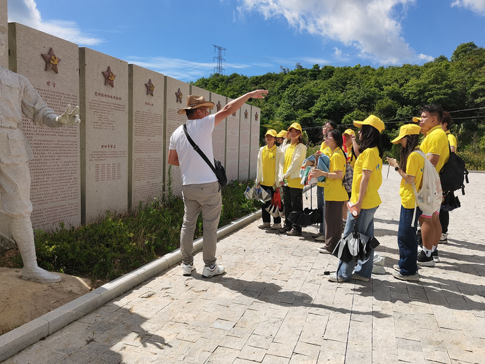 图1 水门畲族乡小竹湾村吴庆怀书记带领实践队参观爱国主义教育基地