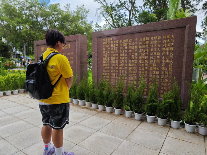 “初心赓续”队的队员们在纪念碑前默哀,表达对革命先烈的敬意。他们通过观看纪念碑上的英雄事迹和烈士名字的铭刻,深刻感受到革命烈士们为国家和人民的无私奉献。