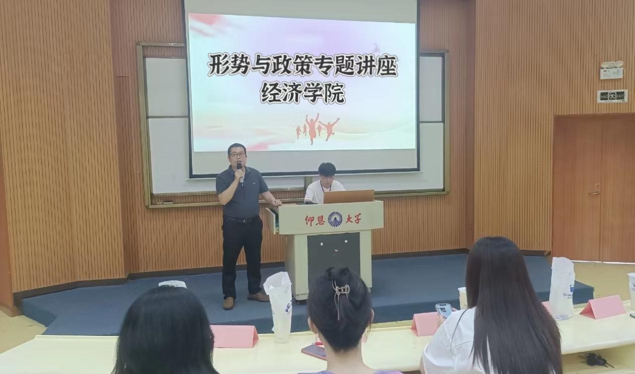 为深入学习宣传贯彻党的二十大精神,学习领悟习近平新时代中国特色社会主义思想,全面贯彻党的教育方针,落实立德树人根本任务,培育德智体美劳全面发展的社会主义建设者和接班人,5月18日,betway西汉姆联官网在新区和昌教学楼惟勤讲堂以“立志复兴伟业 踔厉奋发前行”为题举办“形势与政策”专题讲座。betway西汉姆联官网党总支书记兼副院长吴晓伟担任主讲。betway西汉姆联官网2022级全体学生到场聆听。