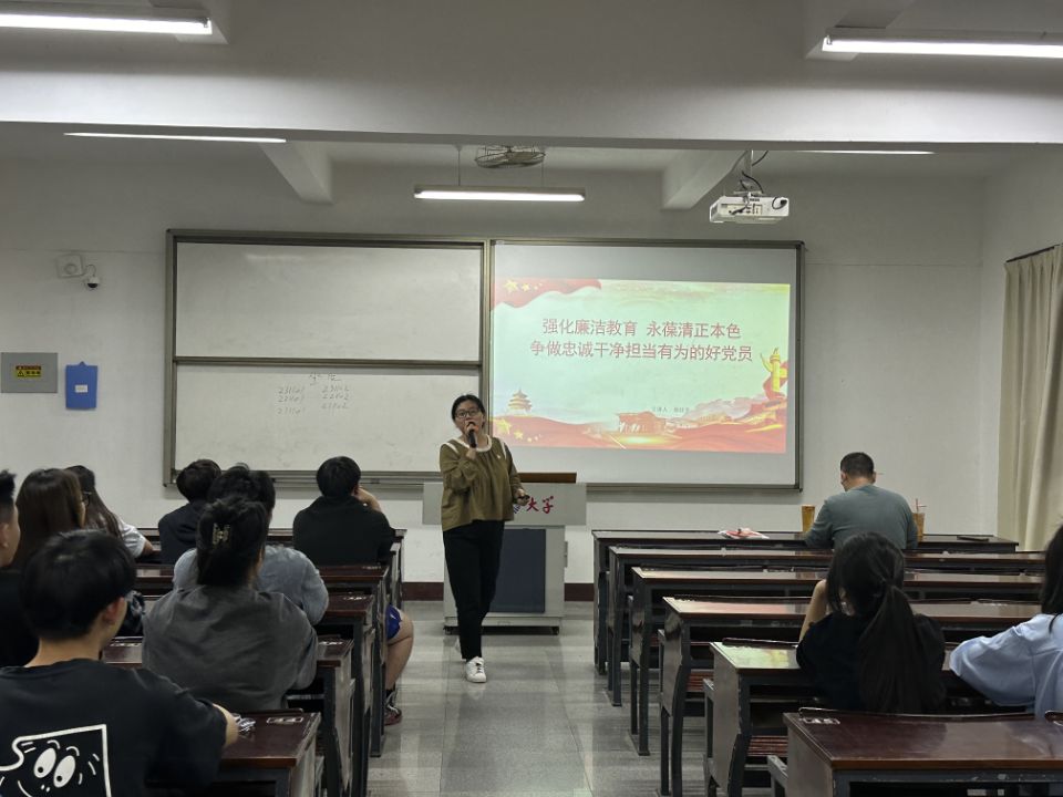 为加强新时代廉洁文化建设,深入学习领会习近平总书记关于全面从严治党、党风廉政建设和反腐败斗争的重要论述,教育引导广大党员、干部增强不想腐的自觉,明大德、守公德、严私德,筑牢思想道德防线,增强拒腐防变能力,涵养持廉守正的时代新风。2024年5月16日晚,betway西汉姆联官网经济系学生第一党支部在新区仰恩楼C5-305组织开展了“强化廉洁教育,永葆清正本色”为主题的党课。党总支副书记赖桂全老师作为党课主讲人,经济系学生第一党支部书记武培汾老师、组织委员仲平老师、宣传委员杨越老师和支部全体成员参与本次活动。