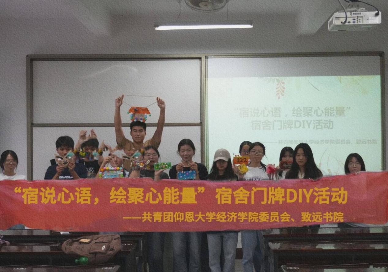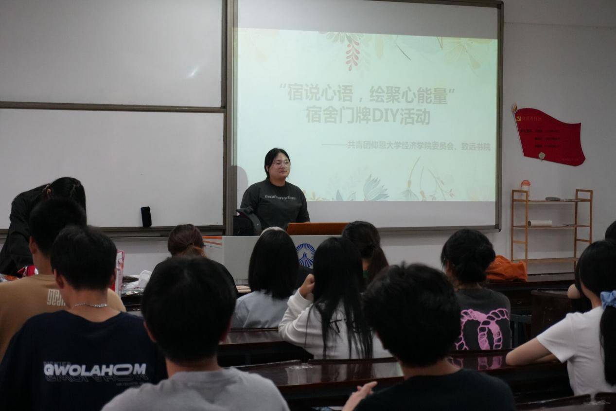 为倡导大学生了解自我,关爱自我,进一步推进宿舍文明建设,营造温馨、健康、和谐的宿舍氛围,betway西汉姆联官网团委联合致远书院以“525心理健康日”为契机,于5月22日下午在仰恩楼A5-305教室举办“宿说心语,绘聚心能量”宿舍门牌DIY活动。