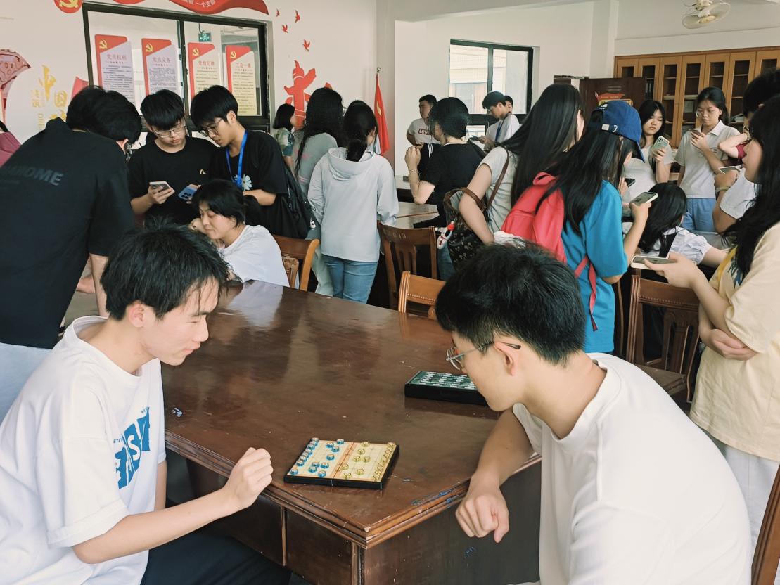 比赛包含五子棋、飞行棋、象棋、围棋、军棋、跳棋、斗兽棋七种棋类。选手们全神贯注,遵循友谊第一,比赛第二的宗旨,严格按照各项棋类规则进行。比赛现场气氛热烈,选手们沉着应战,不让对方有机可趁,上演了一场场精彩的对局。