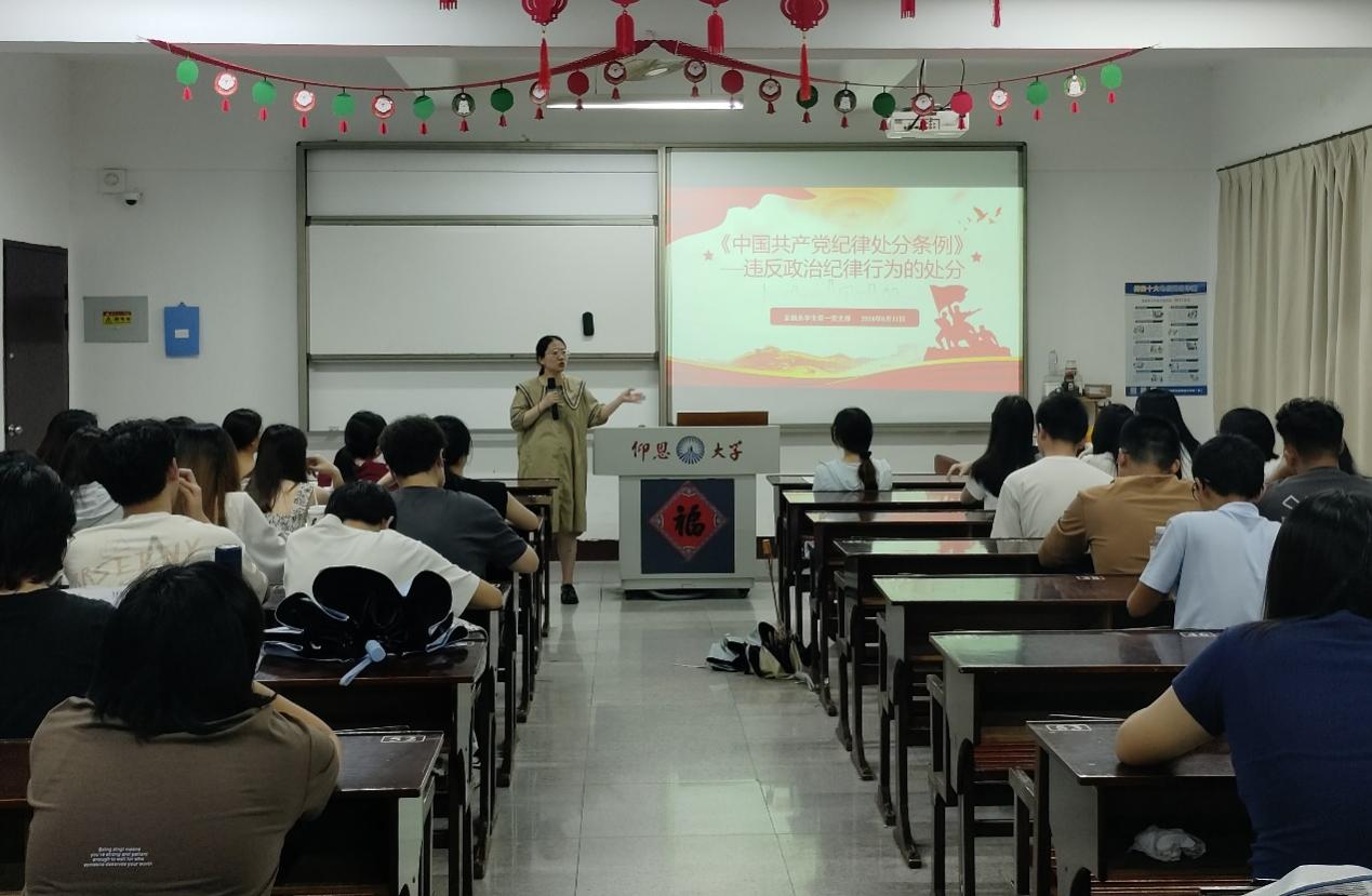 为扎实推进党纪学习教育,引导全体党员干部强化纪律意识,严守纪律规矩,2024年6月17日晚上,betway西汉姆联官网金融系学生第一党支部在仰恩楼C2-305组织开展“《中国共产党纪律处分条例 》第六章”主题学习研讨会,针对违反政治纪律行为的处分。支部书记何丽玲老师、支部全体党员及各班入党积极分子参加了这次学习会。