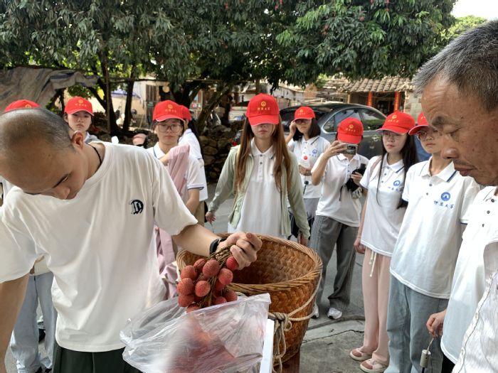 实践队通过深入农间与果农开展交流,积极投身荔枝的采摘、分拣、包装工作。期间村支书苏瑜斌先生认真讲解,实践队员了解到了荔枝的不同功效。通过劳动实践,实践队员们切身感受到农民的艰辛和农产品产出的不易,增长实践队员的劳动奉献意识,成功做到深入农民生活,体验乡土气息。同时,为充分了解当地荔枝文化,实践队进村入户通过面对面访谈和填写问卷的形式开展深度调研。实践队长表示,通过此次劳动实践,切身感受到农民的艰辛和农产品产出的不易,也让队员在劳动中丰富了第二课堂,增长了才干。