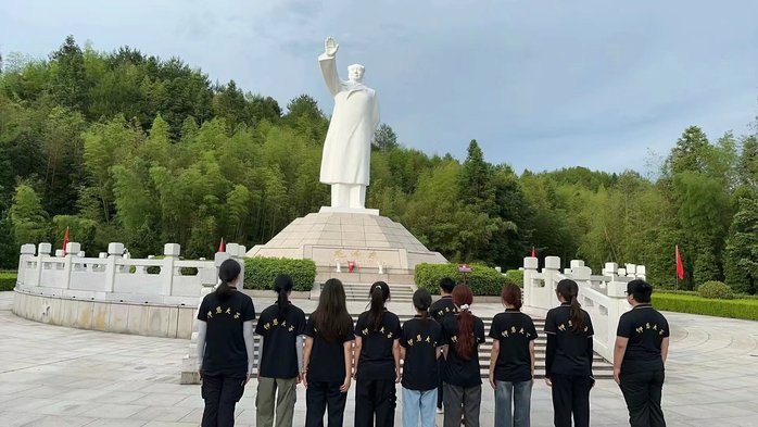进入会址内部,这里保留了旧日的风貌,一砖一瓦都是历史的痕迹。毛泽东、朱德等前辈的办公室桌椅早已陈旧,但他们的精神不朽,所承载的非凡意义永不磨灭。会场廊柱上张贴的“反对单纯军事观点”等标语,醒目且充满战斗性,它们无声地诉说着先辈们探寻革命道路时的艰辛与不屈。实践队前往毛主席纪念园。站在这庄严肃穆的主席园内,队员们的心情格外庄重。他们静静地聆听着讲解员详述毛泽东等老一辈革命家的留下的丰功伟绩,感受着那段波澜壮阔的历史,仿佛穿越到那个风云变化的年代,看到了红军战士们勇往直前,用生命捍卫着国家的独立和民族的尊严。