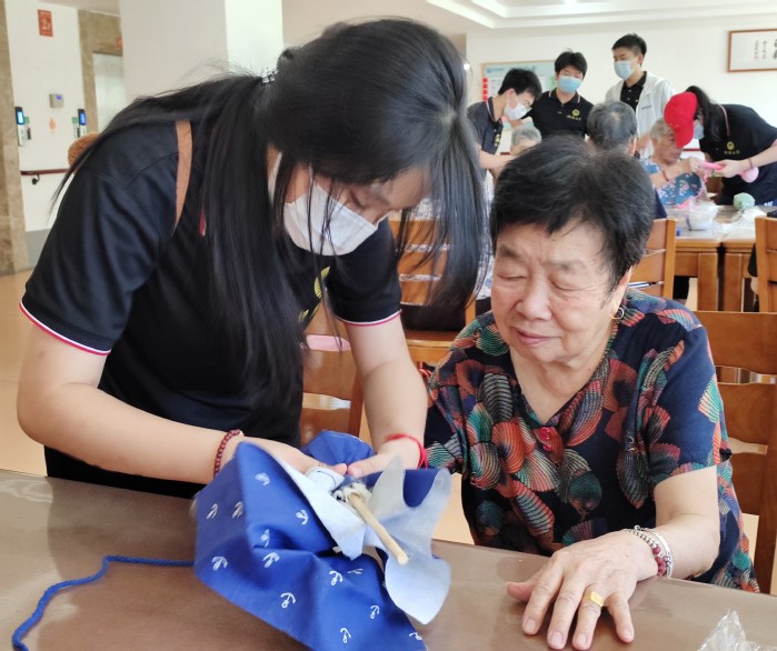 探秘智慧之源,传承千年哲学智慧。7月19日上午,福利中心邀请讲师,为老人们讲解《道德经》第五章的“天地不仁”的内容。队员们与老人们围坐一桌,聚精会神地聆听讲师讲课,实践队队员和老人们也在课堂的结尾分享了自己的感悟体会。艾草传统与创新结合,助力健康生活新风尚。下午三点,实践队又组织了一次特别的手工活动——制作艾草锤。亲手制作艾草锤,既能锻炼老人们的动手能力,又能让老人们体验到传统中医理疗的魅力。