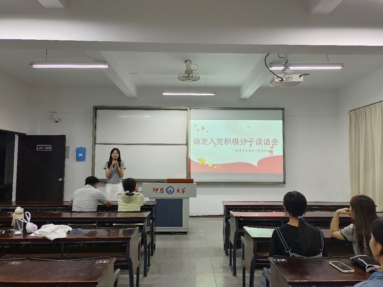 10月8日晚上7:00,经贸系学生第一党支部于仰恩楼A1-101召开推优对象谈话会。支部支委黄培真、林烽、林丽华出席。