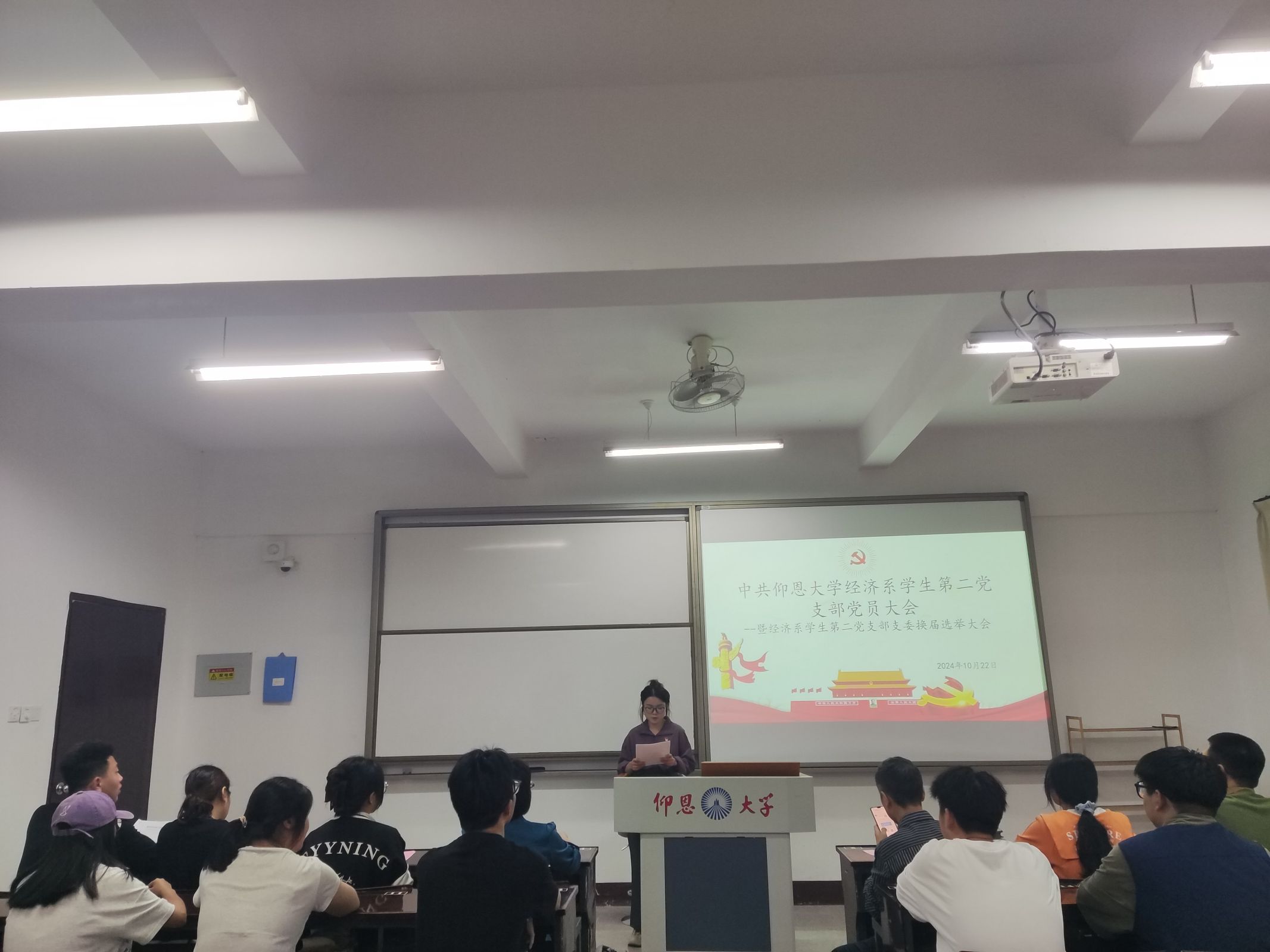 10月22日,betway西汉姆联官网经济系学生第二党支部在仰恩楼A5-105召开支部大会暨支委换届选举大会,支部全体党员与会。