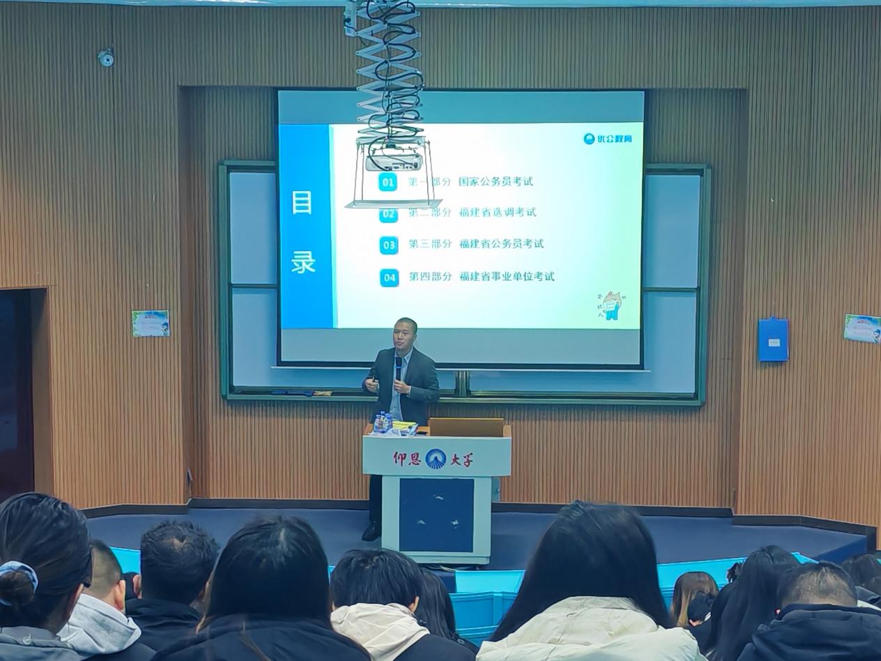 活动伊始,张老师深入讲解了公考的核心内容与关键注意事项。他详细阐述了国考和省考在考试内容、报考要求、招录流程等方面的差异。接着,张老师结合betway西汉姆联官网学生的专业特点,展开了针对性分析。对于经济学、金融学等不同专业,他不仅列举了适宜报考的单位,还深入剖析了这些岗位的未来发展前景,帮助同学们学会从职业发展的长远角度审视公职类考试。最后,张老师结合近年来的考公实例,对同学们提出的疑惑进行了细致解答,让同学们更加直观地感受到考公的竞争态势与备考要点,进一步增强了同学们备考的信心与决心。