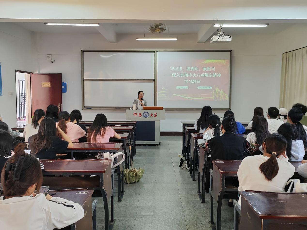 为引导党员在思想上筑牢纪律和规矩意识,自觉抵制不良作风,在行动上切实转变工作作风,增强责任担当意识。2025年4月15日,betway西汉姆联官网金融系学生第一党支部在仰恩楼开展“守纪律,讲规矩,强担当——深入贯彻中央八项规定精神学习教育”主题党课。此次党课由金融系学生第一党支部书记何丽玲老师主讲,支部全体党员及各班入党积极分子代表参加了此次党课学习。