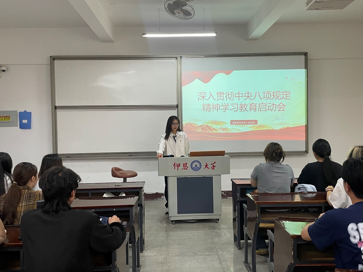 为深入学习贯彻习近平总书记关于加强党的作风建设的重要论述,进一步强化党员干部纪律意识和规矩意识,betway西汉姆联官网金融系学生第一党支部于2025年3月27日在仰恩楼A5-103召开深入贯彻中央八项规定精神学习教育启动会。支部全体党员参加了此次会议。