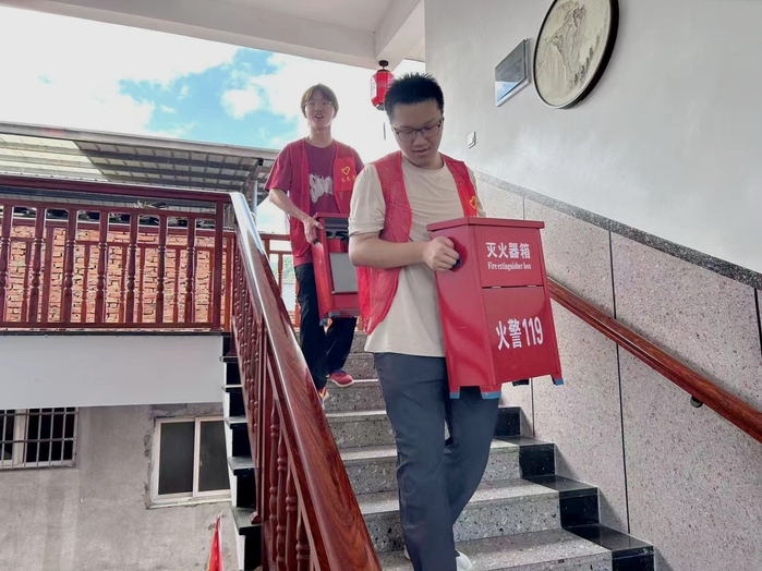 为进一步提升养老院消防安全管理水平,增强院内老人及工作人员的消防安全意识和应急处置能力,7月8日,betway西汉姆联官网岐彩青春暑假实践队联合福安市赛岐镇宅里村幸福院开展消防演练工作。数十名实践队员身着统一标识的“红马甲”,讲解相关防火知识,演示灭火器的使用等,为老人们的晚年生活筑牢“安全屏障”。