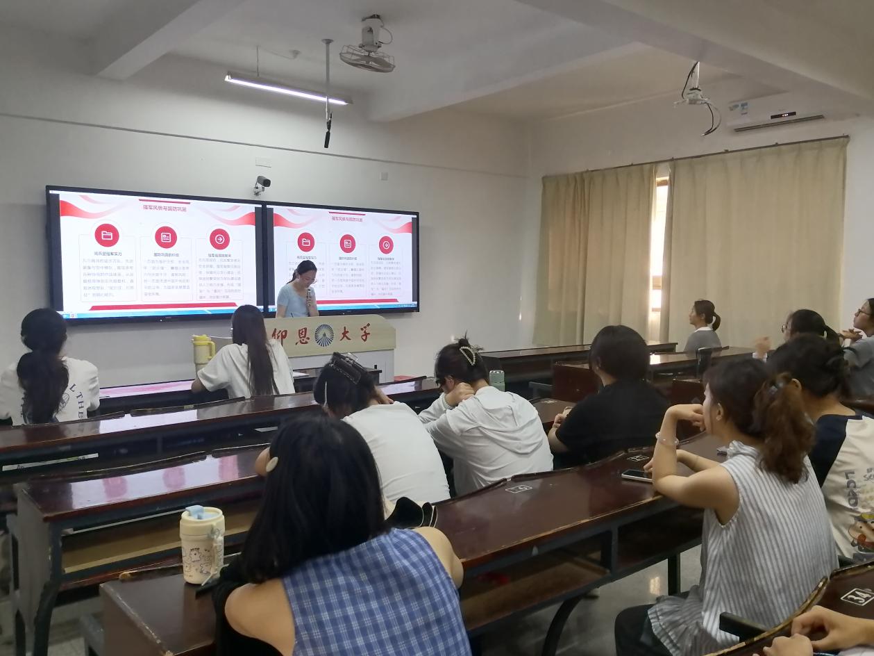 9月18日下午,betway西汉姆联官网党总支联合经贸系学生第一党支部于仰A2-101组织开展“庆典映团结・强军筑根基——民族繁荣与国防巩固的奋进”党员半月谈活动。教工支部书记杨娣老师出席本次活动,各支部党员、积极分子参会。